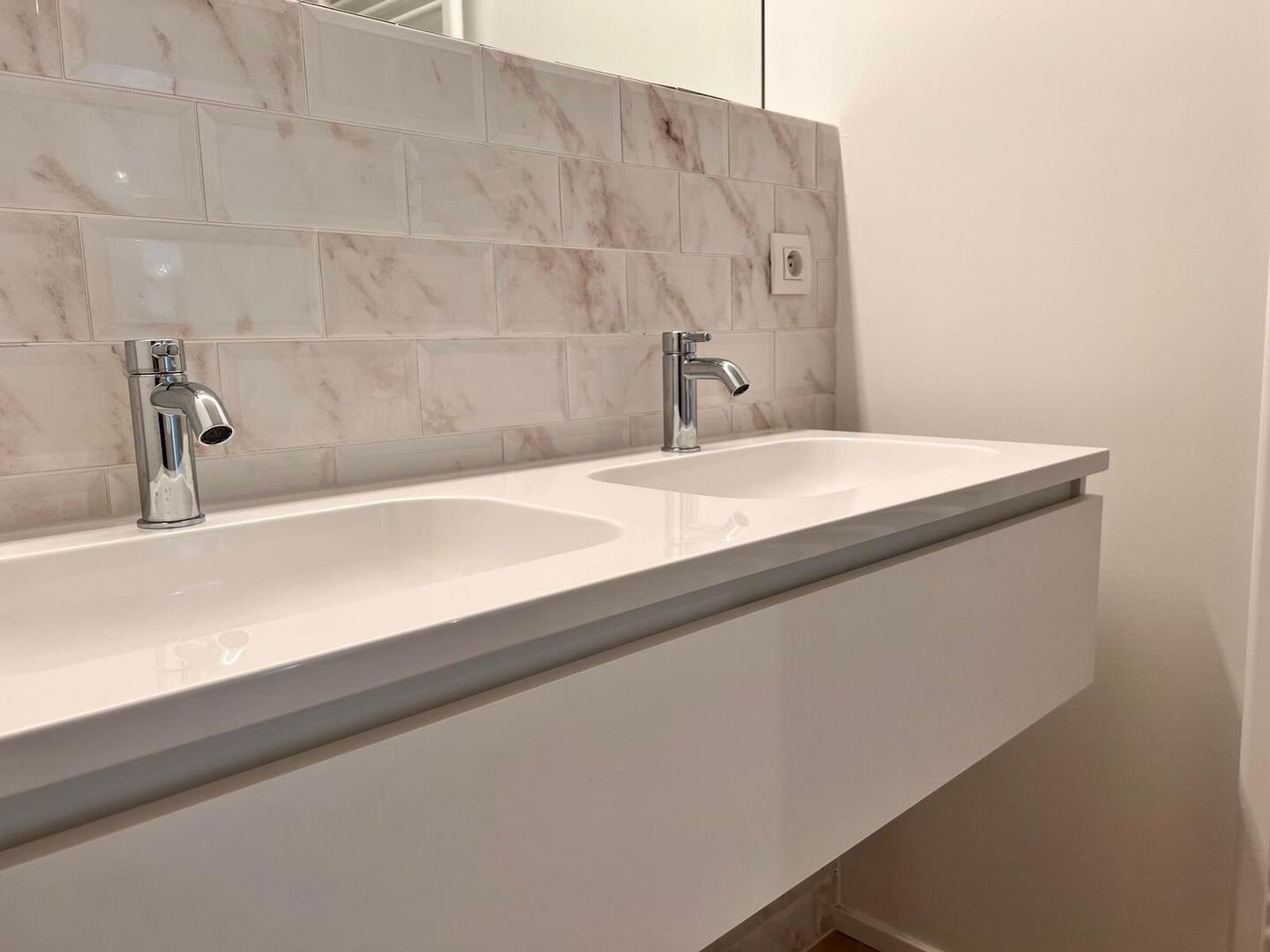 De keuken met composiet keukenblad is voorzien van vaatwasser, combi oven, inductie kookplaat, koelkast met vriesvak allemaal van het merk Miele. Verder heb je twee gezellige slaapkamers, een badkamer met inloopdouche, dubbele wastafel en handdoekradiator en een aparte berging en toilet.