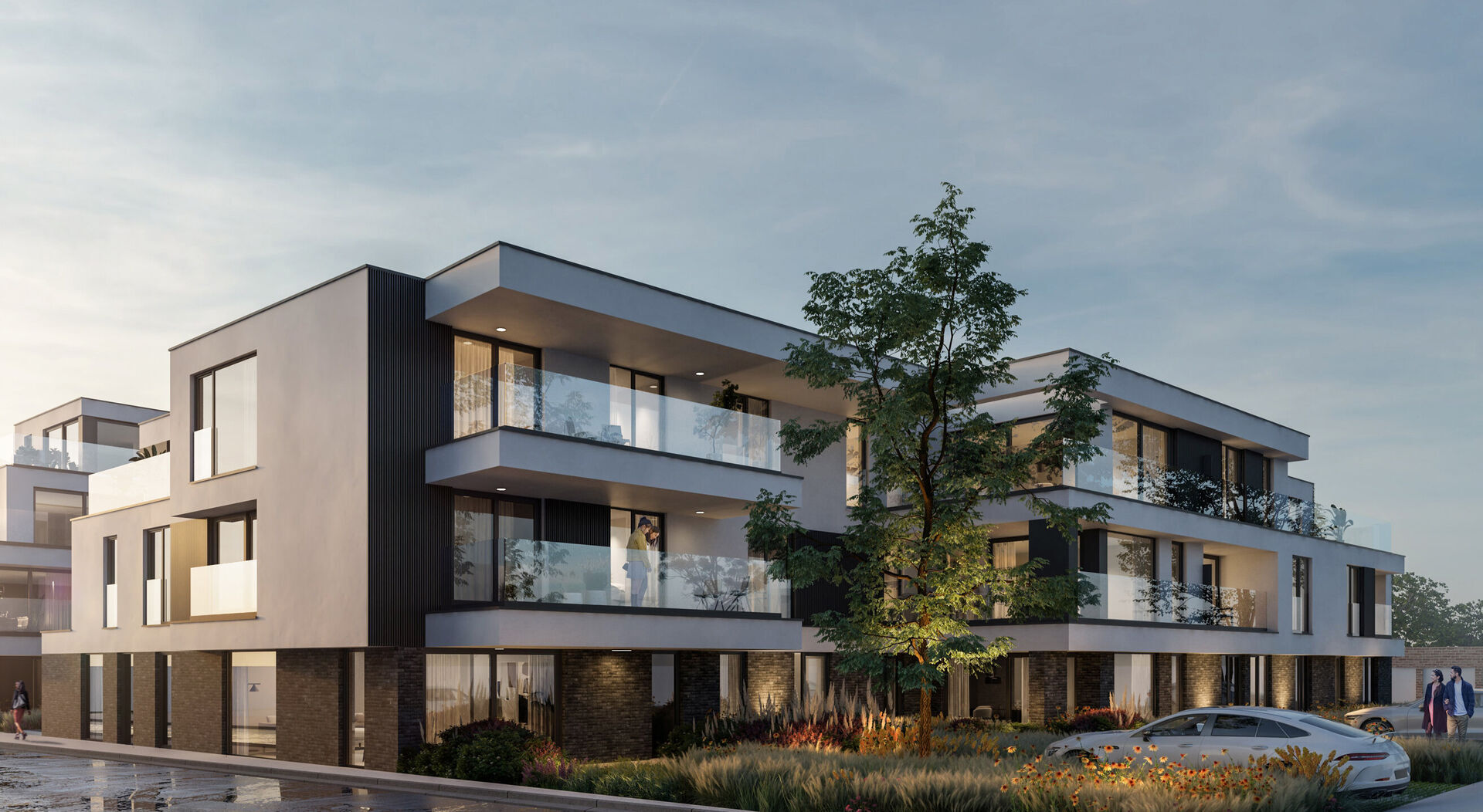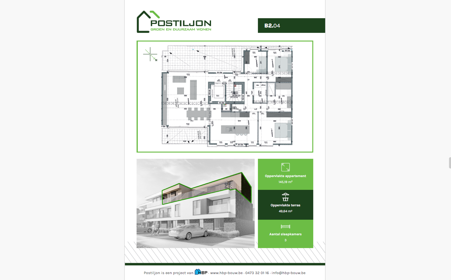 Postiljon bestaat uit twee elegante gebouwen met een hedendaagse uitstraling, gekenmerkt door grote raampartijen die zorgen voor een overvloed aan natuurlijk licht. Tussen de gebouwen vindt u een groene binnentuin met een open karakter, perfect voor ontspanning en sociale interactie. Daarnaast zijn de gebouwen voorzien van groendaken en een groengevel, die niet alleen esthetisch aantrekkelijk zijn, maar ook bijdragen aan de biodiversiteit en energie-efficiëntie. De afwerking gebeurt met kwalitatieve materialen die voldoen aan de hedendaagse comforteisen.