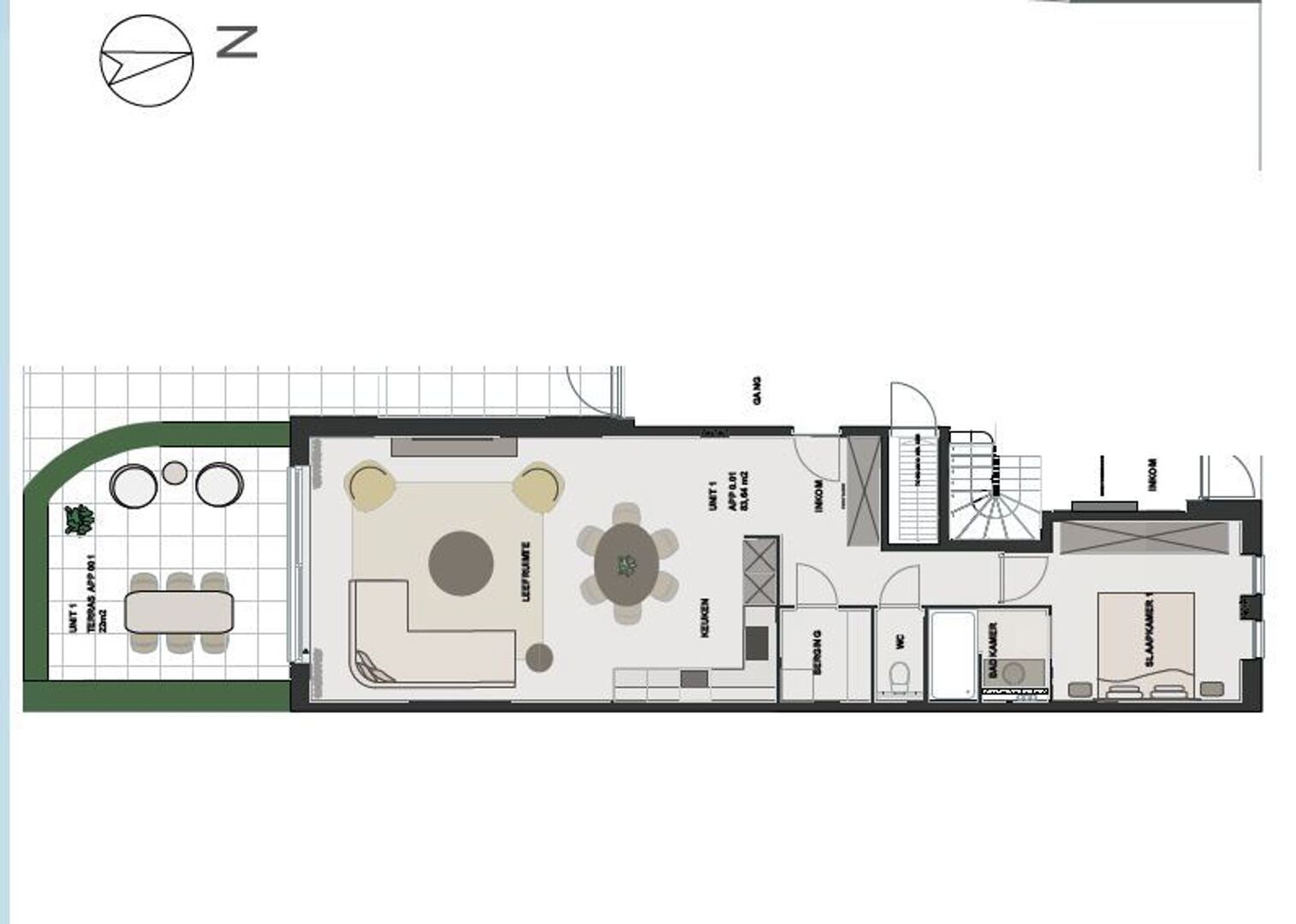 Dit leuke gelijkvloers 1 slaapkamer appartement voelt gezellig en ruim aan. De leefruimte sluit aan op het gezellige Zuidgerichte terras. De moderne open keuken is volledig ingericht. Er is een aparte berging. Verder is er een gastentoilet, een ruime slaapkamer en een volledig ingerichte badkamer.