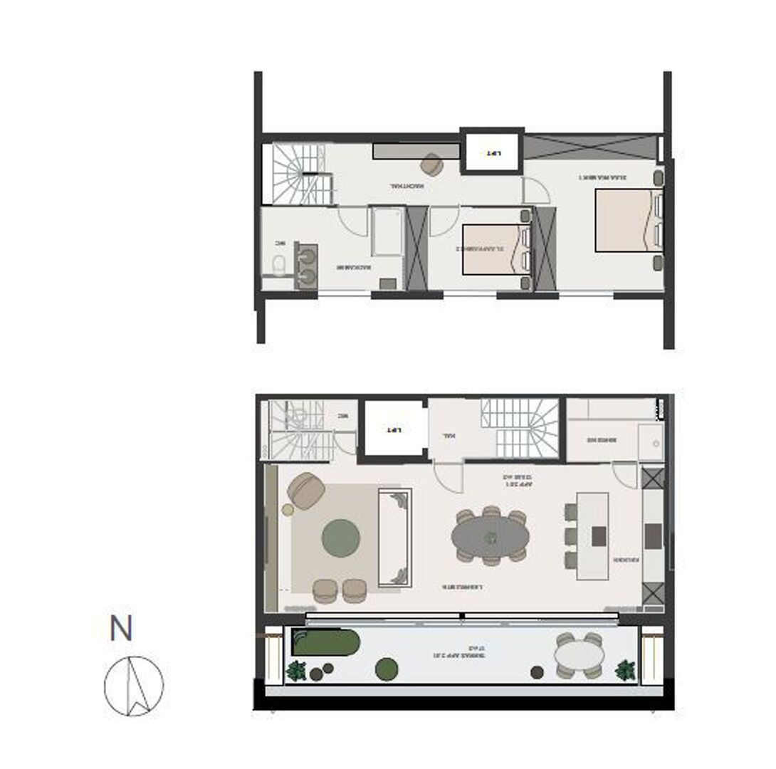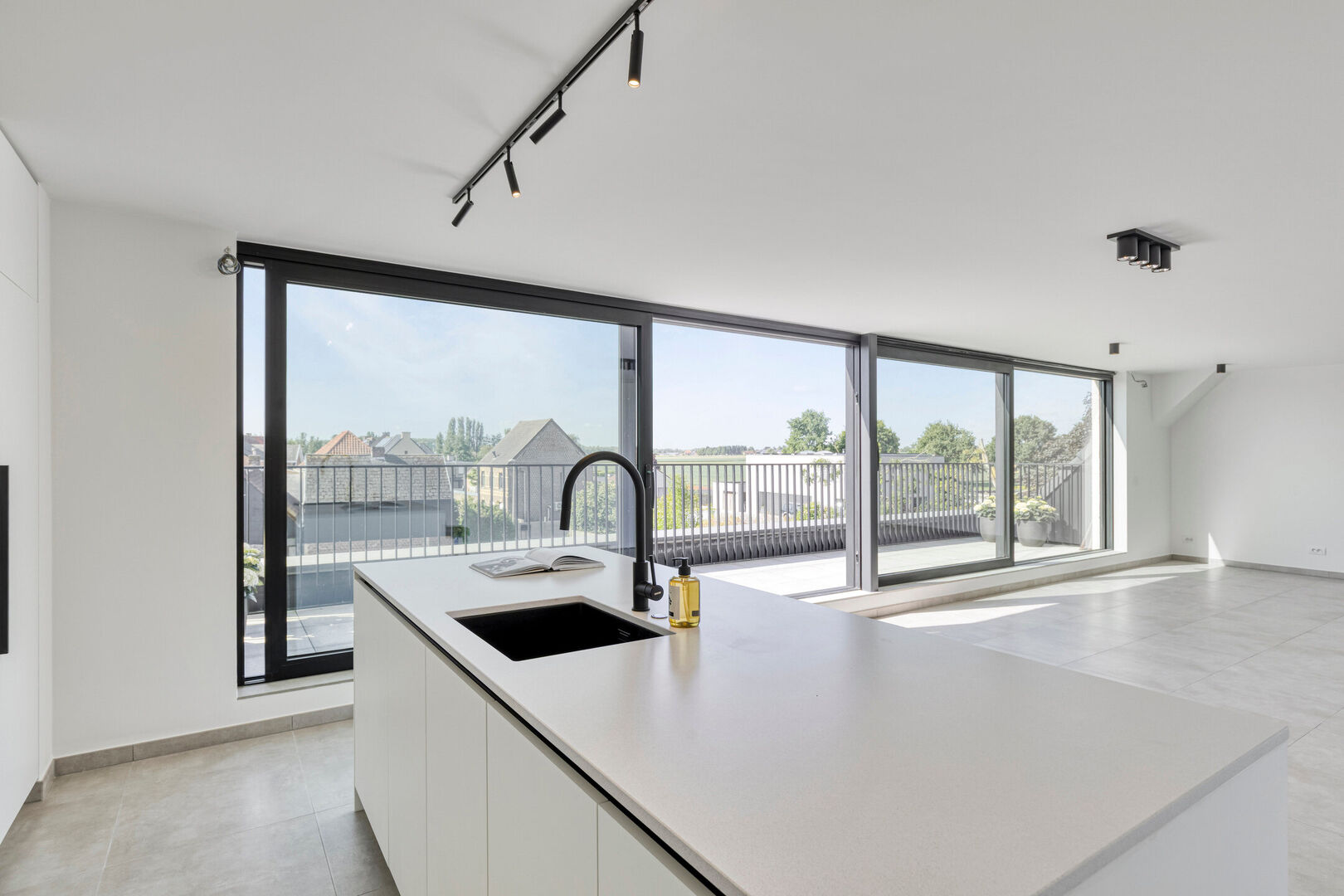 Dit ruimtelijke duplex appartement op de bovenste verdieping is een echte parel: je beschikt over de volledige bovenverdieping én een extra dakverdieping. De lichtrijke leefruimte met open keuken geniet van een fantastische lichtinval en geef uit op een zuidgericht terras met prachtig vergezicht. Naast de stijlvol ingerichte keuken ligt de berging. Er is een gastentoilet op deze verdieping. Met de trap kom je op de dakverdieping waar zich de 2 slaapkamers met ruime badkamer en toilet bevinden.