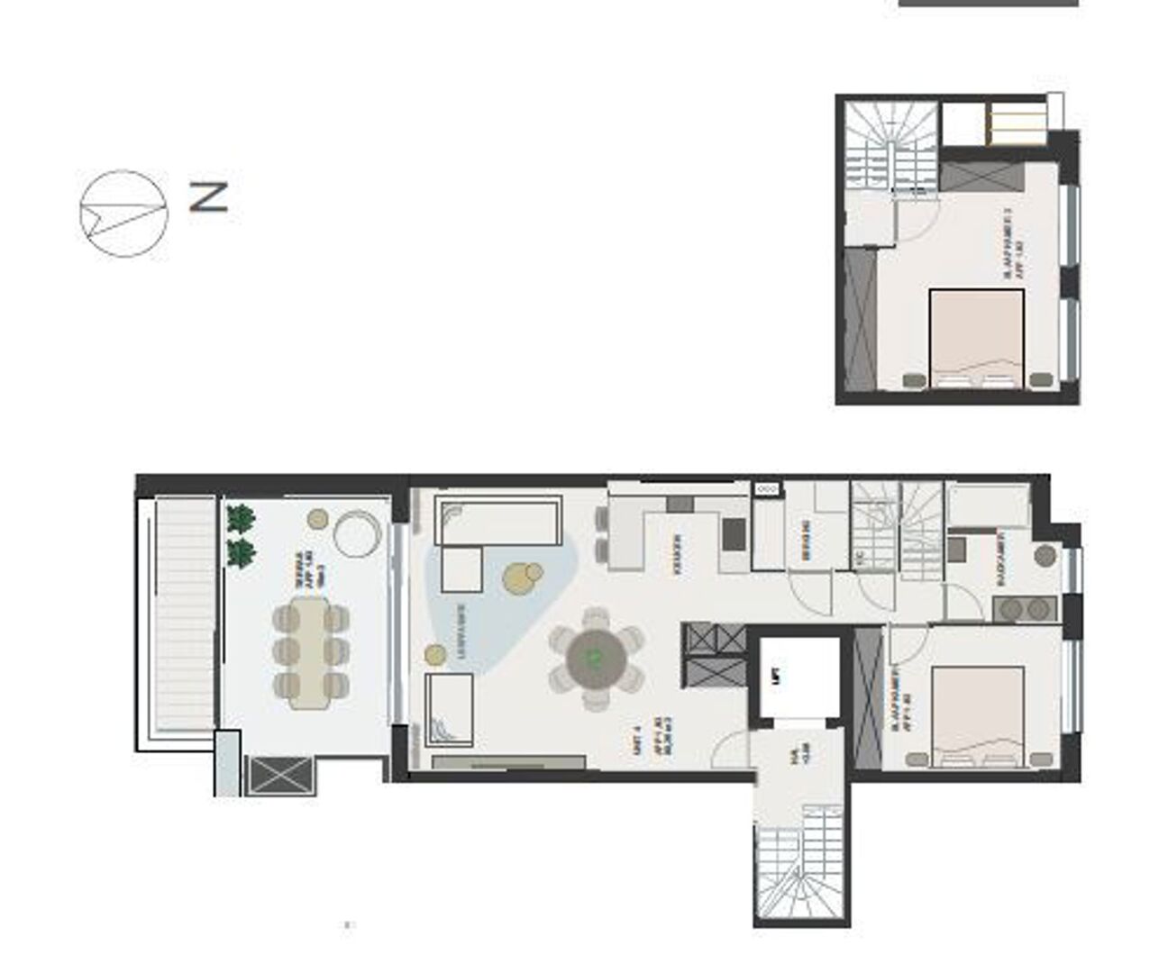 Dit leuke duplex appartement heeft alles om comfortabel te wonen op de benedenruimte (ruime leefruimte, open ingerichte keuken, aparte bergruimte, gastentoilet, badkamer en slaapkamer). Op de bovenliggende verdieping bevindt zich de 2e slaapkamer. Het ruime zon gerichte terras palend aan de leefruimte maakt het geheel af.