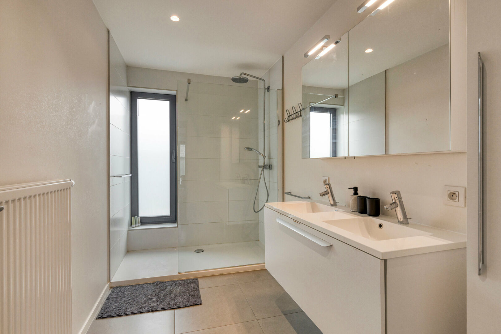 De bovenverdieping telt drie volwaardige slaapkamers en een recent ingerichte badkamer met douche en dubbele lavabo.